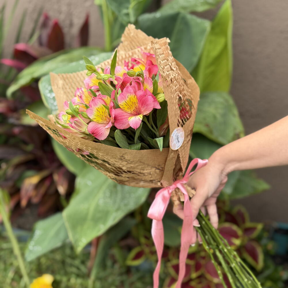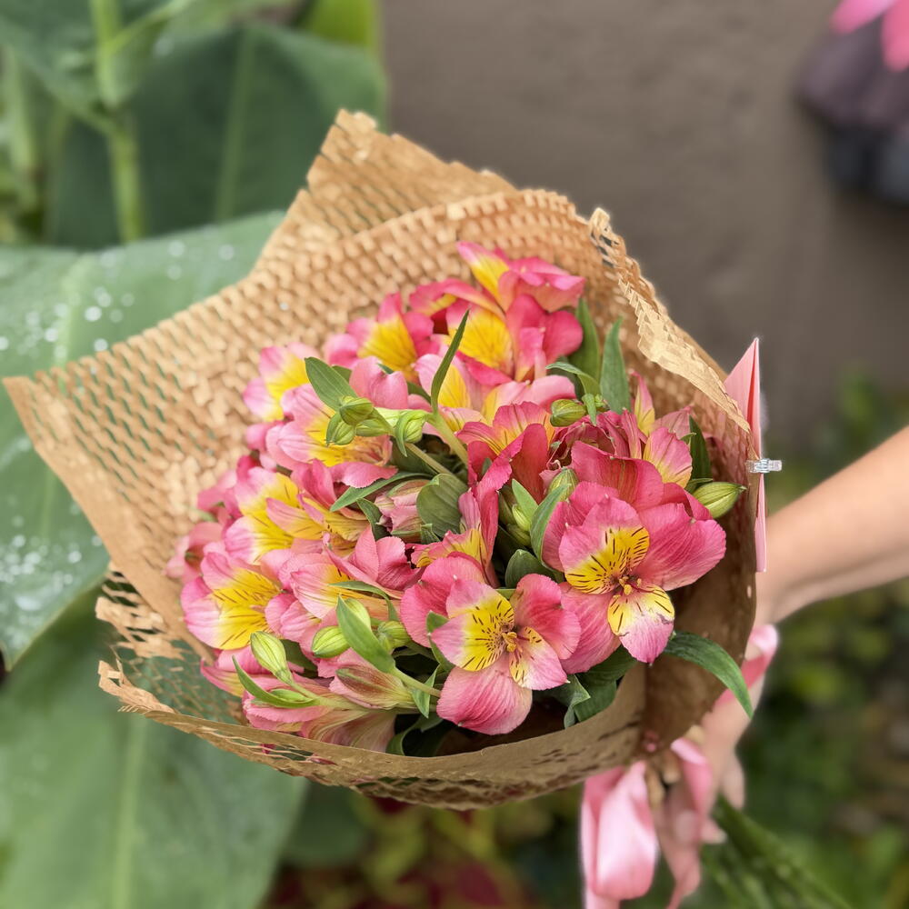 Este lindo buquê é composto por 1 unidade de Alstromelia rosa, cujo tom variável adiciona um toque de delicadeza e sofisticação ao arranjo. Acompanha duas unidades de kraft colmeia, trazendo um aspecto rústico e elegante ao buquê. O pacote é concluído com um belo cartão para você expressar seus sentimentos e um laço charmoso para agregar ainda mais beleza ao presente. Este buquê é a escolha perfeita para demonstrar seu carinho em qualquer ocasião.