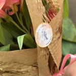 laço - 1 un. cartão - 1 un. kraft colmeia - 2 un. alstromelia rosa (tom variável) - 1 un.
