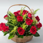 Esta fascinante Cesta de Flores apresenta até 15 lindas rosas vermelhas, habilmente arranjadas numa harmonia estética perfeita com uma única folha verde. O arranjo é elegantemente apresentado numa cesta cuidadosamente seleccionada e embrulhada com celofane para uma experiência única. A cesta é finalmente enfeitada com um laço rústico para um toque de autenticidade e charme rústico. Esta cesta de flores é um presente perfeito para qualquer ocasião especial ou simplesmente para mostrar amor e apreciação.
