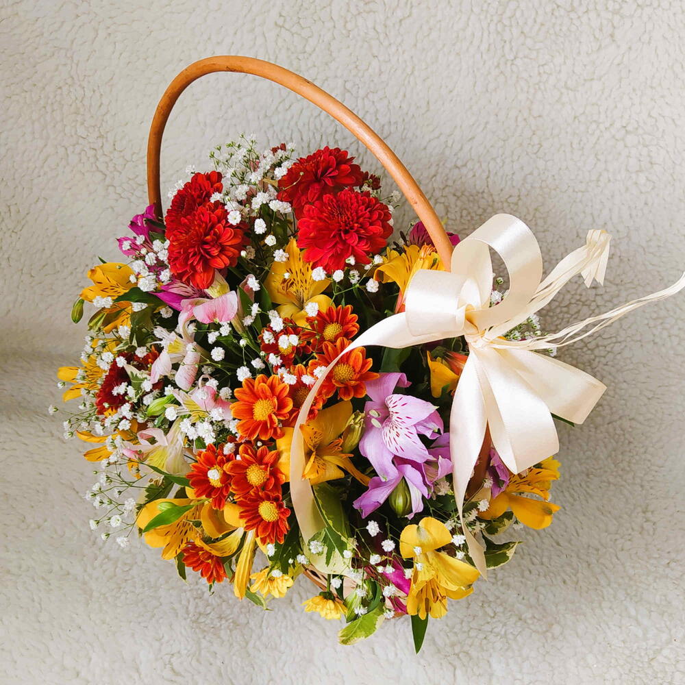 arranjo de flores do campo coloridas - 1 un. cesta em vime p - 1 un.