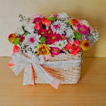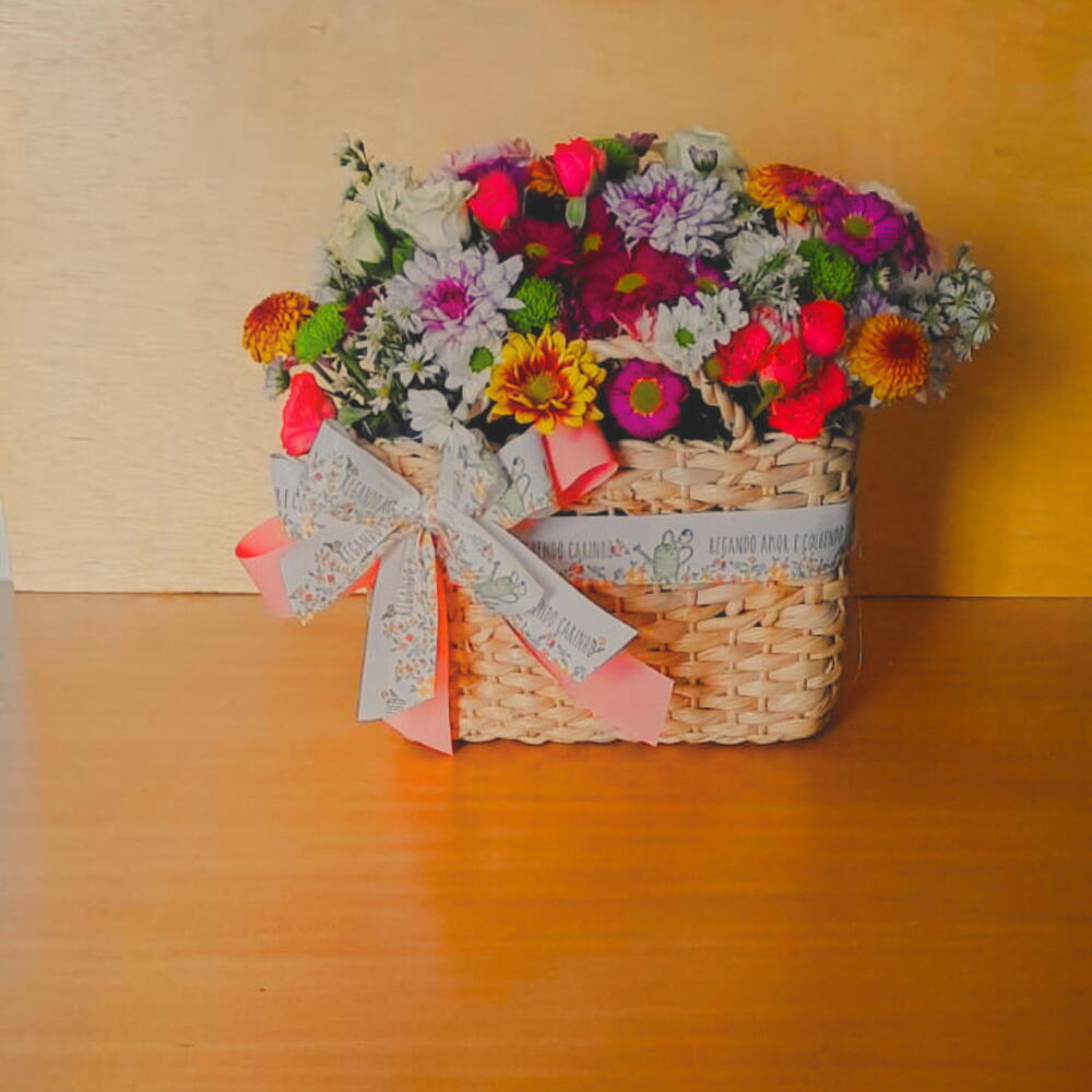 Cesta com Flores Diversificadas – Beleza e Vida em Cada Detalhe Surpreenda com um arranjo encantador de flores diversificadas, cuidadosamente montado em uma charmosa cesta de vime. Ideal para presentear ou decorar ambientes com um toque de naturalidade e elegância. Por que escolher nossa Cesta com Flores Diversificadas? Variedade de flores naturais que trazem cores vibrantes e frescor para qualquer espaço. Flores fixadas em esponja floral, garantindo hidratação e durabilidade prolongada. Apresentação artesanal em cesta de vime, que valoriza o charme rústico e sofisticado do arranjo. Dimensões do produto Altura: 25 cm Comprimento: 25 cm Largura: 15 cm Cuidados para manter o arranjo sempre bonito Mantenha a esponja floral úmida para prolongar a vida das flores. Evite exposição direta ao sol para preservar as cores e frescor. Coloque em local arejado, sem correntes de ar fortes. Benefícios exclusivos Presente pronto para encantar em ocasiões especiais. Decoração natural que transmite aconchego e alegria. Combinação perfeita para surpreender e emocionar. Deixe seus momentos ainda mais especiais com a Cesta com Flores Diversificadas. Um presente que expressa carinho, cuidado e beleza. Garanta já e transforme qualquer ambiente com um toque natural e delicado!