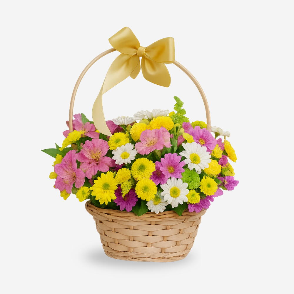 Descubra a beleza rústica com a nossa Cesta de Flores. Composta por uma unidade de flores do campo vibrantes e coloridas, esta cesta encanta por sua simplicidade. Acompanhada por um fino laço de cetim, é o presente perfeito para alegrar o dia de alguém. Um pedacinho da natureza para levar aconchego e vivacidade a qualquer ambiente. Aproveite e compartilhe a sensação de um belo campo florido.