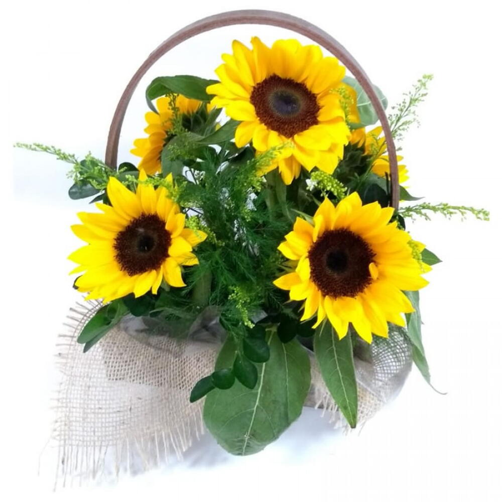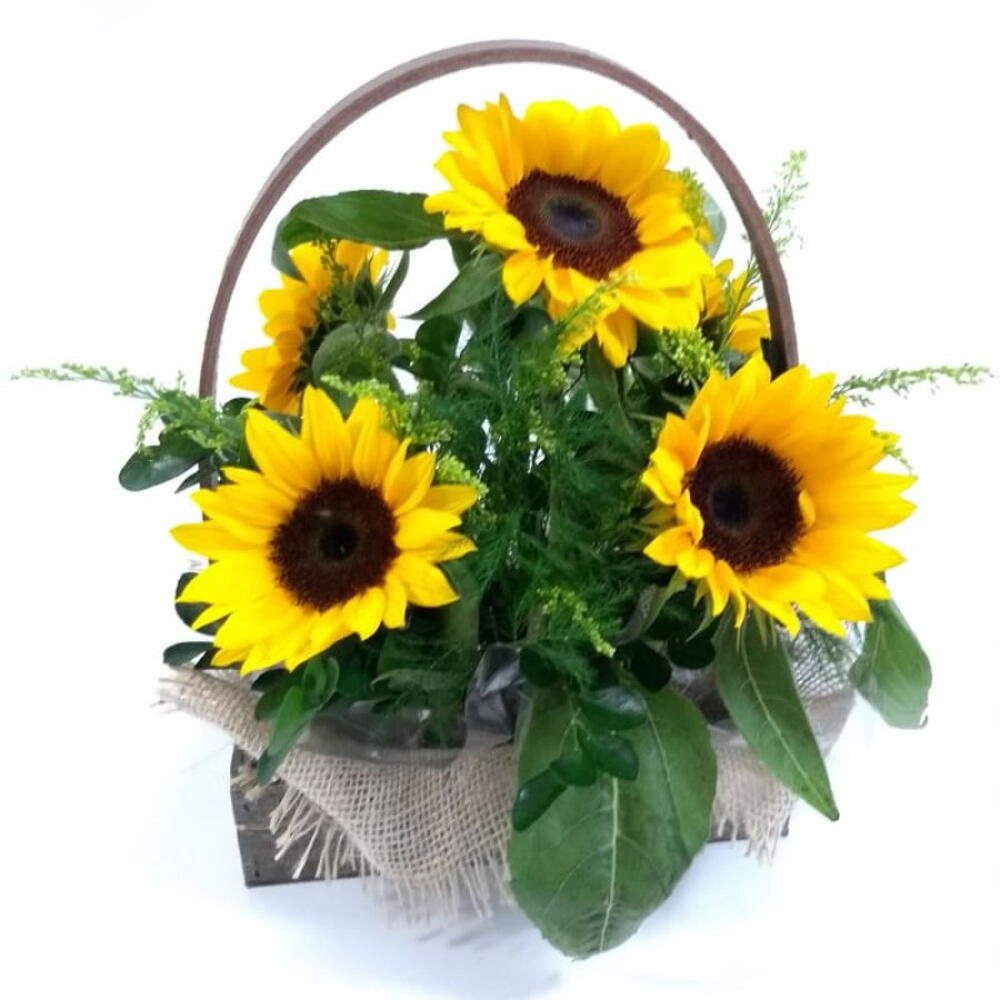 Apresentamos a você nosso box de flores, composto por cinco alegres e vibrantes girassóis, símbolos de adoração e felicidade, cuidadosamente acomodados em uma simpática cestinha. Essa é uma escolha perfeita para iluminar o dia de alguém com sua beleza radiante e natural. Ideal para qualquer ocasião, este conjunto transmite sentimentos de calor, alegria e afeto. Os girassóis são conhecidos por sua longa vida útil, garantindo que seu gesto de carinho seja apreciado por muito tempo.