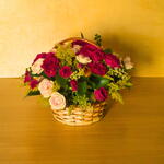 rosa - 1 un. folhagens - 1 un. cesta de vime - 1 un.