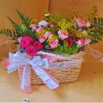 laço - 1 un. cesta de vime - 1 un. rosa e outras flores (verificar disponibilidade) - 1 un.