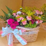 Cesta de Vime com Flores Naturais Variadas