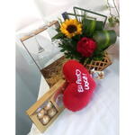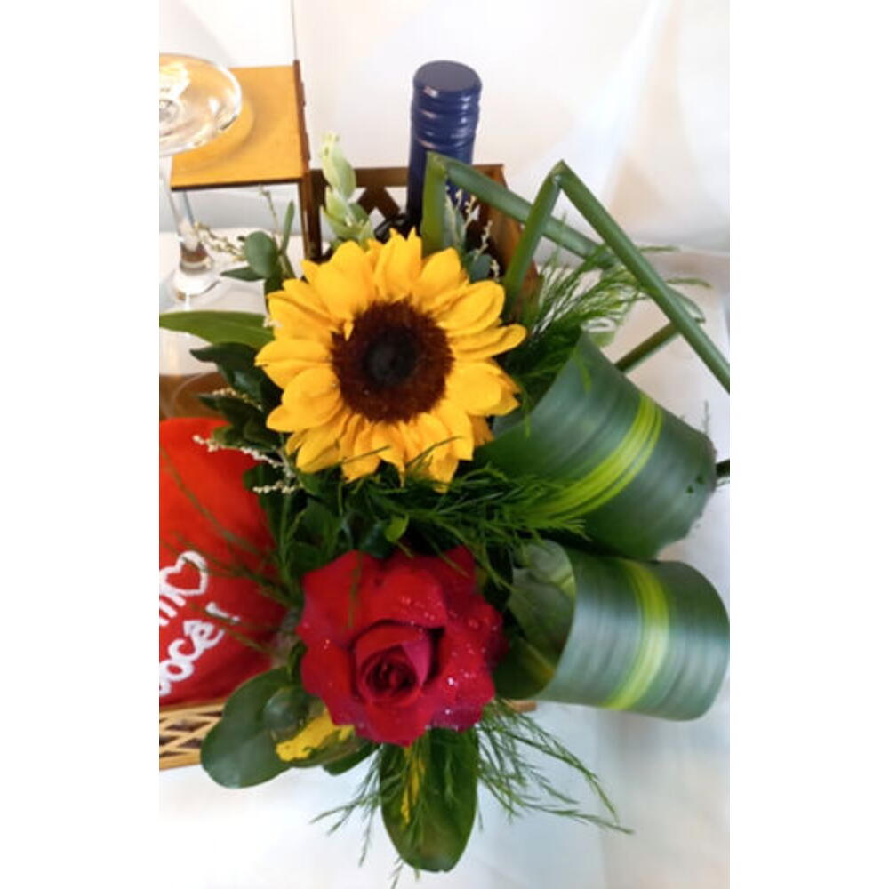 Este deslumbrante Kit de Presente é perfeito para surpreender alguém especial em qualquer ocasião. Composto por uma elegante Cesta em MDF, uma garrafa de Vinho selecionado, duas Taças de Cristal para compartilhar brindes inesquecíveis, uma deliciosa Caixa de Ferrero Rocher com 8 unidades para adicionar um doce toque à celebração e um pequeno e adorável Coração de Pelúcia como símbolo de carinho. O conjunto inclui ainda um belo Arranjo Floral fresco que dá vida e cor à cesta. Tudo isso acondicionado com alta qualidade e entregue com um lindo Laço para completar a perfeição deste presente. Este kit tem tudo que você precisa para surpreender e expressar todo o seu amor.
