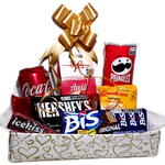batata pringles 104g - 1 un. bis tradicional 100g - 1 un. coca-cola 350ml - 1 un. bolinho laranja bauduco 40g - 1 un. icekiss - 1 un. caixa c/4 bombons avelã montevergine 55g - 1 un. barra hershey 75g - 1 un.