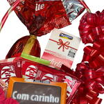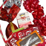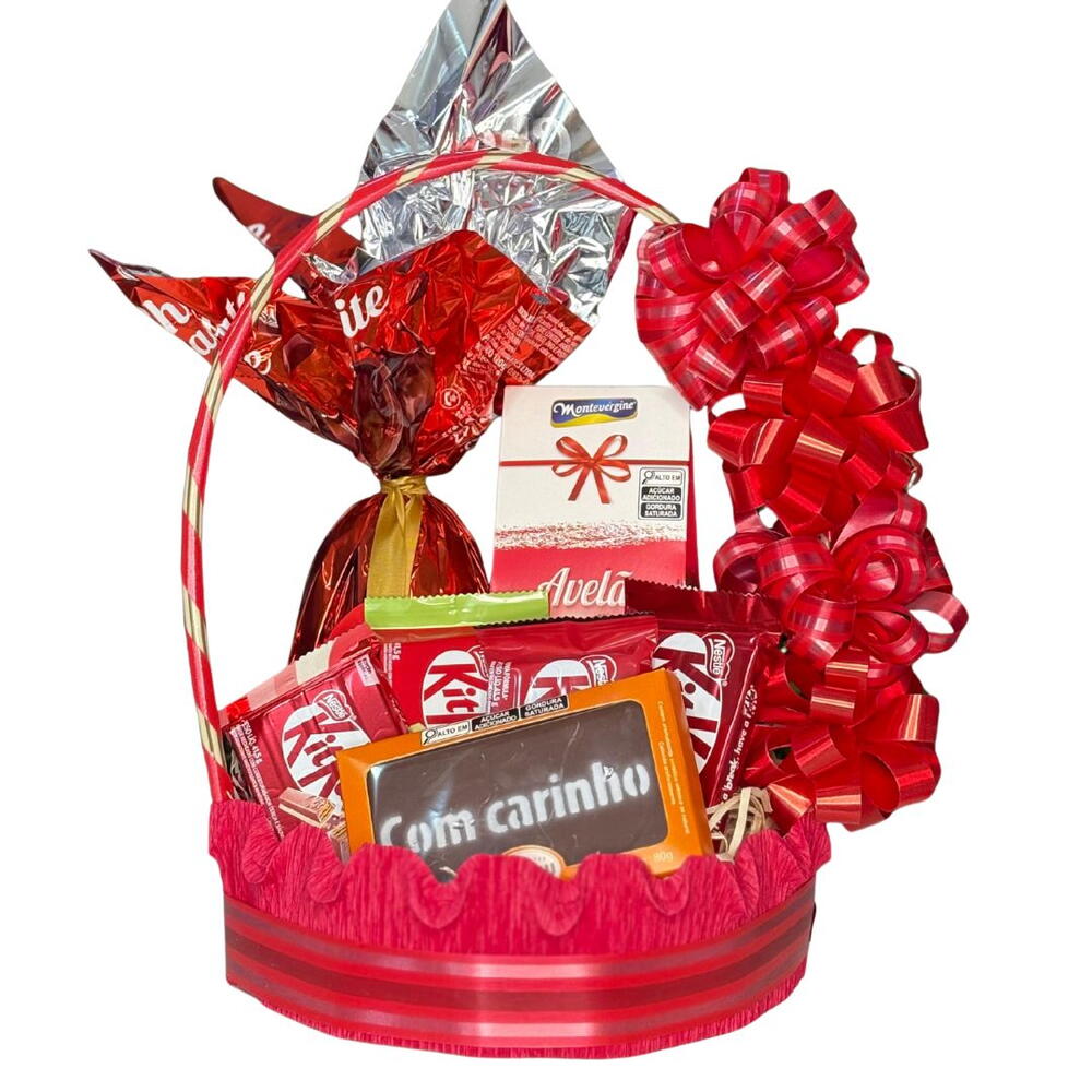 laço - 1 un. kitkat - 4 un. saco celofane - 1 un. cesta decorada - 1 un. ovo de páscoa topcau - 1 un. barra com frase - 1 un. caixinha de trufa - 1 un.