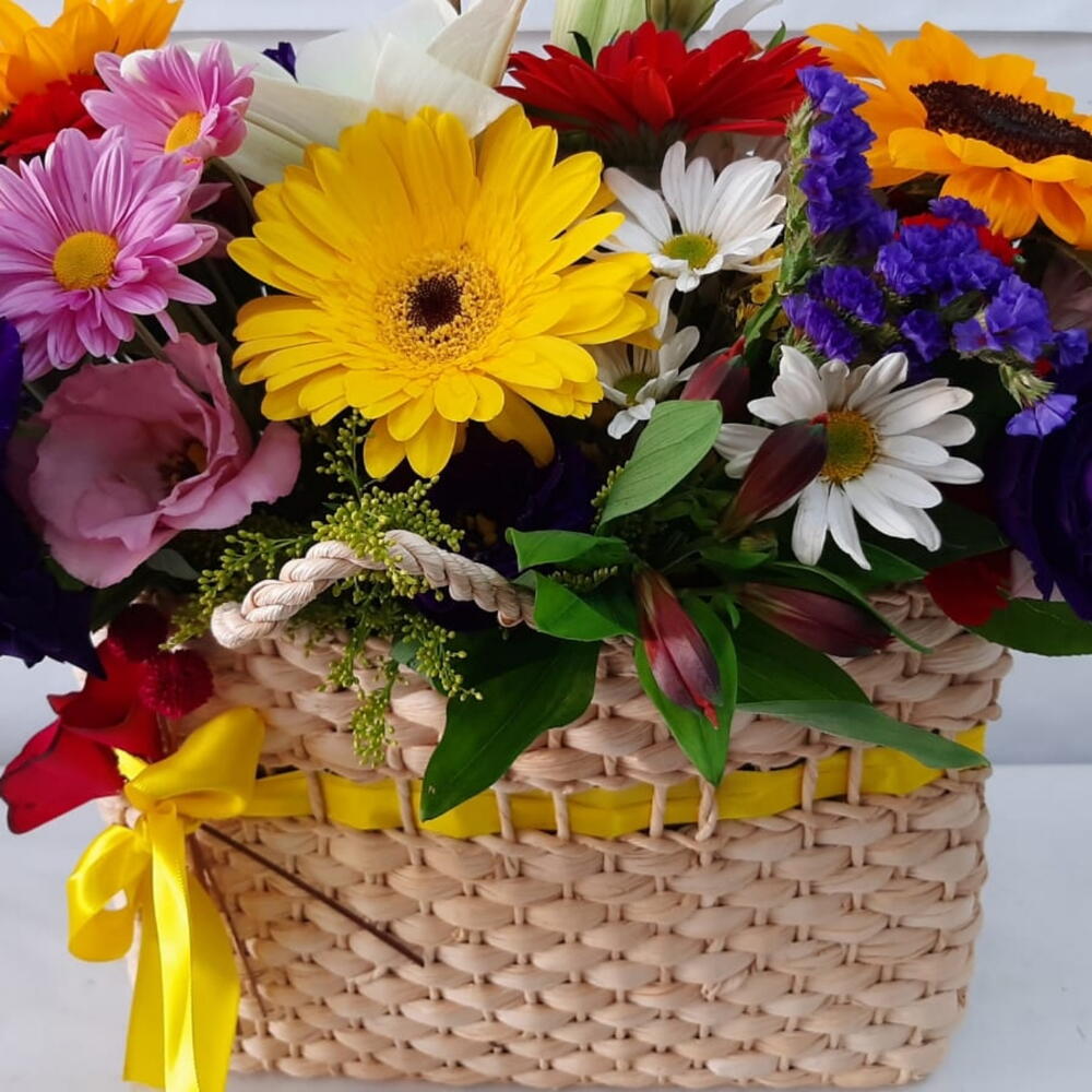 Surpreenda com requinte! A Cesta Requinte Flores Mistas é o presente perfeito para transmitir amor e apreciação. Repleta de flores frescas e vibrantes, esta cesta encantadora combina beleza e sofisticação.
