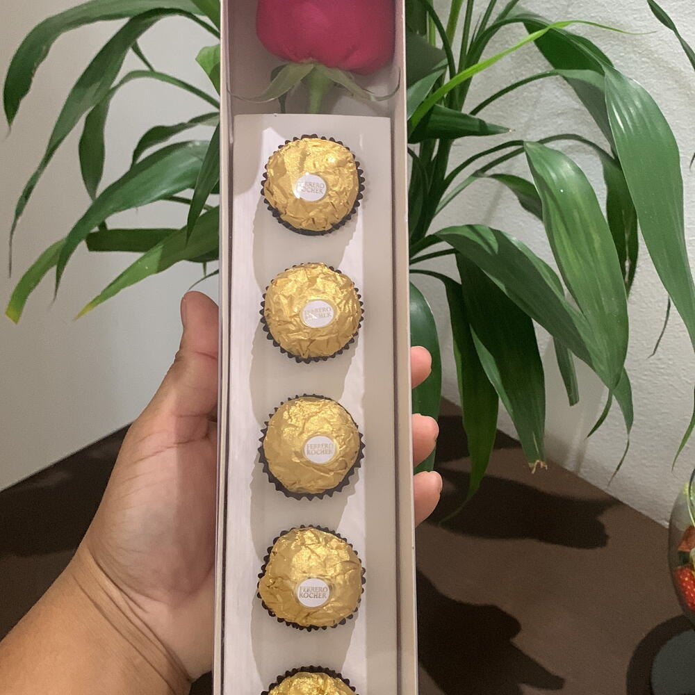 rosa - 1 un. embalagem personalizada - 1 un. ferrero rocher - 5 un.