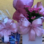 Combo vai uma flor com balão apaixonante, mais cestinha de chocolate