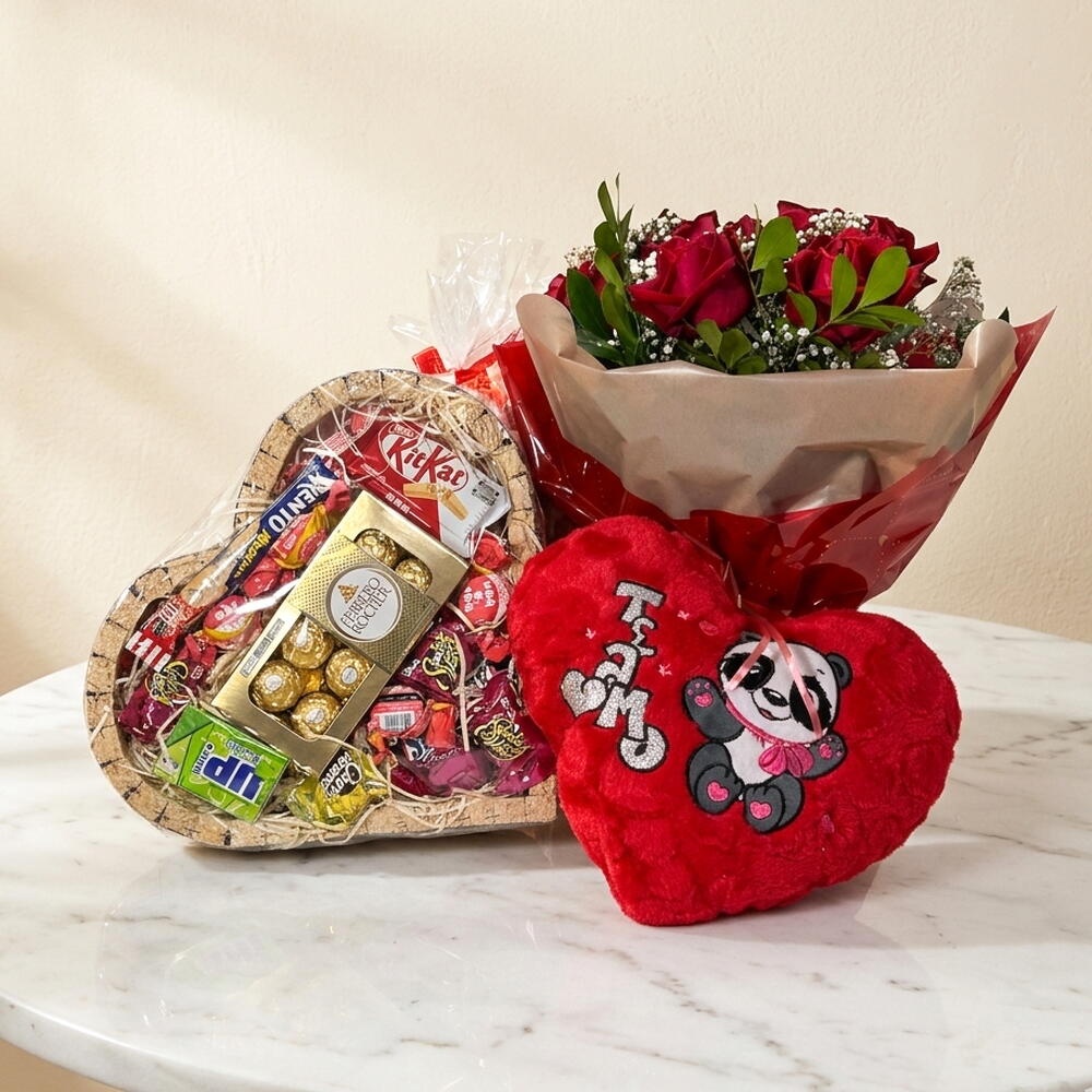 Este maravilhoso Kit de Presente é a seleção ideal para demonstrar o seu carinho em qualquer ocasião. Composto por 10 unidades de chocolates variados, garantindo uma experiência de sabor única e sofisticada a cada mordida. O kit inclui uma linda rosa para adicionar um toque romântico e um punhado de folhagens para criar harmonia estética. Todos estes itens são elegantemente empacotados em uma caixa personalizada, amarrada com um laço charmoso. Para completar, uma adorável pelúcia está também inclusa, tornando esta oferta ainda mais carinhosa e calorosa. Sem dúvidas, um gesto delicado que irá marcar momentos especiais!