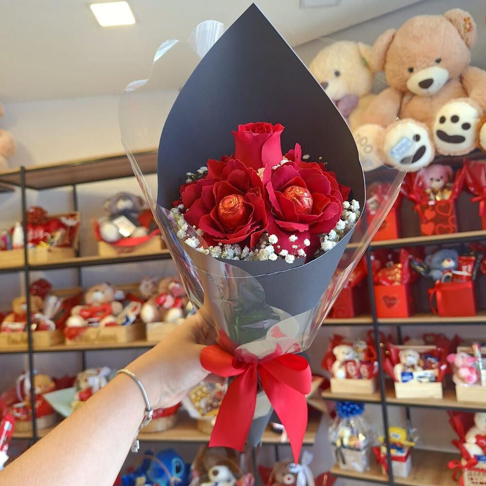 Cone C/ 5 Rosas Artificial C/ Bombons + 1 Rosa Natural