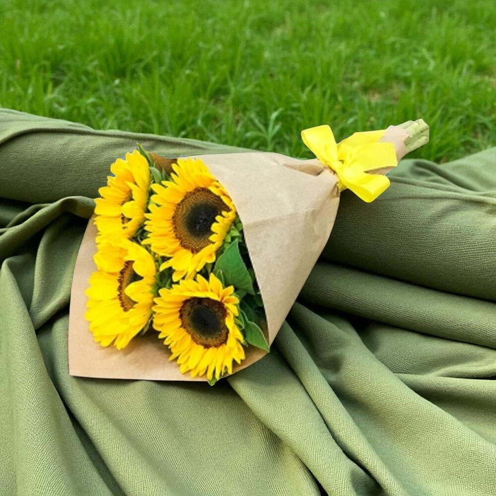 Este elegante buquê é preenchido com quatro radiantes girassóis, enquadrados por uma unidade de folhagens verdes exuberantes. Apresentado em uma embalagem Kraft e amarrado carinhosamente com um laço de cetim, este buquê é a opção perfeita para expressar sentimentos de alegria e apreço. Seja para um presente de aniversário, de formatura ou apenas um gesto de amor, este buquê de girassol irá encantar e surpreender seus destinatários.