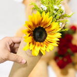 Encante alguém especial com este lindo buquê, composto por um soberbo girassol singular e acompanhado por uma única unidade de folhagem. Este conjunto de flores combina perfeitamente beleza, simplicidade e elegância para criar uma expressão visual de carinho e apreciação sem igual. Ideal para presentear um ente querido em qualquer ocasião.