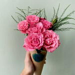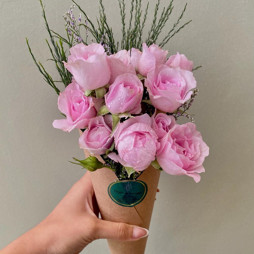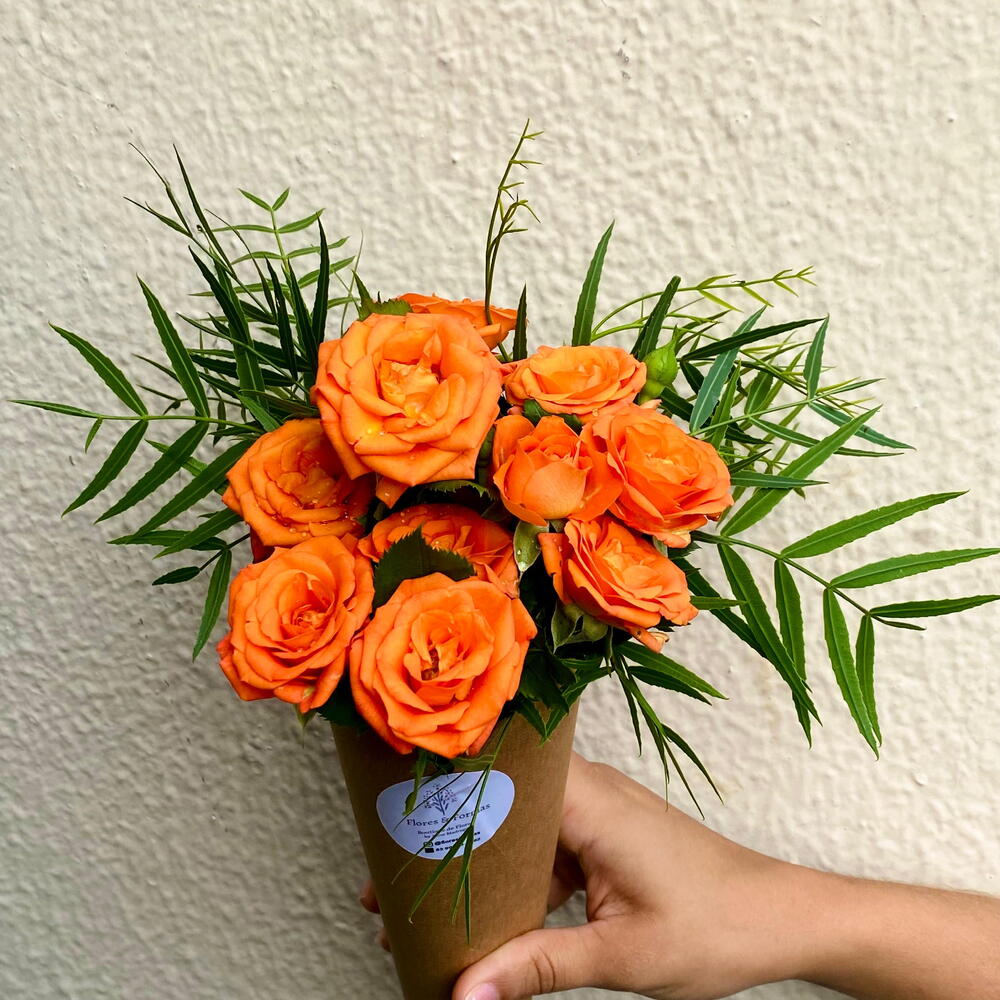 folhagens - 1 un. mini rosa - 2 un. cone kraft - 1 un.