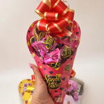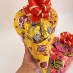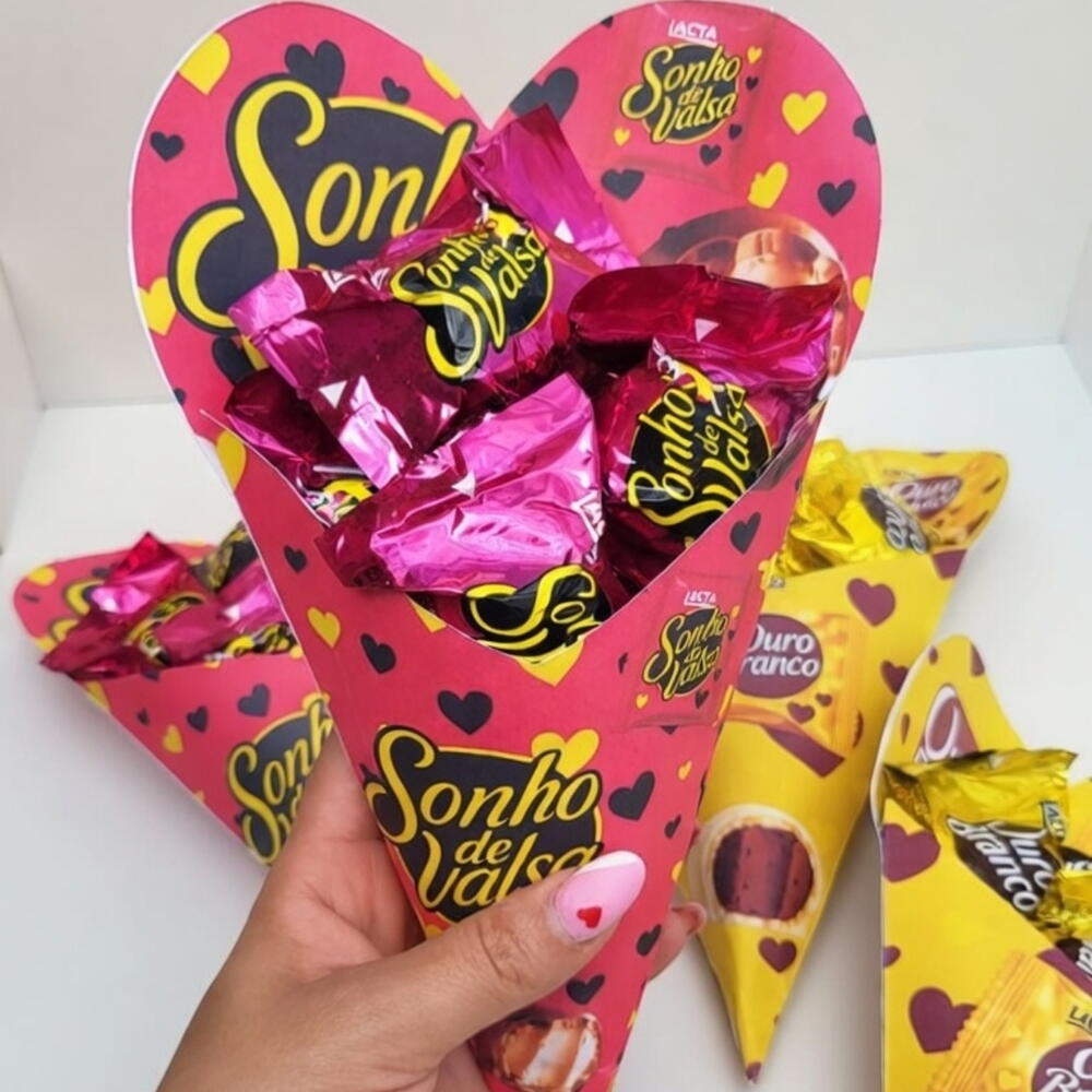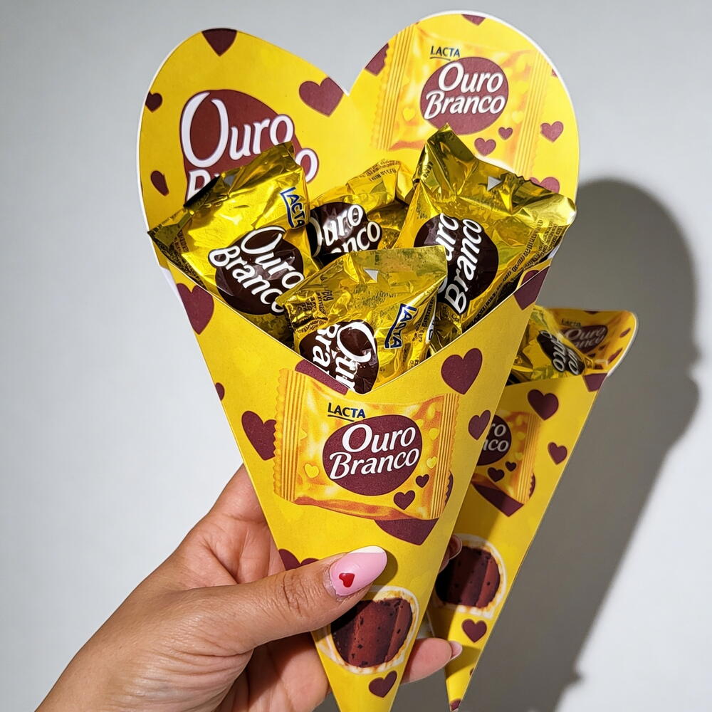 **Cones de Chocolate Lacta – Presentes Perfeitos para Momentos Especiais** Surpreenda quem você ama com nossos exclusivos cones de presente recheados com os deliciosos bombons Lacta. Disponíveis nas versões **Ouro Branco** e **Sonho de Valsa**, cada cone é cuidadosamente decorado com um design romântico em formato de coração e embalado com um toque especial: um laço vermelho sofisticado que transmite carinho e elegância. - **Cone Ouro Branco:** Papel amarelo com detalhes em corações marrons, repleto de bombons cremosos e irresistíveis. - **Cone Sonho de Valsa:** Papel rosa vibrante decorado com corações pretos e amarelos, contendo os clássicos bombons de castanha de caju e chocolate. Perfeitos para presentear no Dia dos Namorados, aniversários, Páscoa ou qualquer ocasião que mereça um gesto doce e inesquecível. **Detalhes do produto:** - Embalagem temática em formato de coração. - Bombons embalados individualmente para manter a frescura. - Laço decorativo que valoriza ainda mais o presente. - Ideal para demonstrar afeto e adoçar momentos especiais. Encante com sabor e charme – faça seu pedido e presenteie com amor!