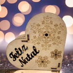 Coração "Feliz Natal" em Mdf com Sonho de Valsa e Ouro Branco