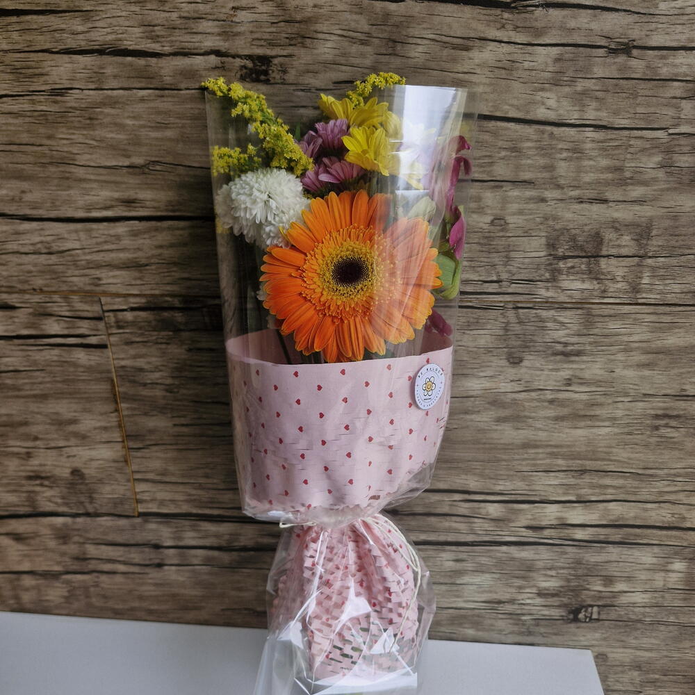 Experimente o encanto de nossa seleção especial com este buquê misto. Composto por uma unidade de mix de flores cuidadosamente escolhidas, é o presente perfeito para encantar em qualquer ocasião. Apreciar a beleza desta variedade de flores é aprimorado pela embalagem de design único, acompanhada de um laço e realçada por uma unidade de folhagens frescas. Para marcar um momento ou simplesmente para colorir o dia de alguém, este buquê é a escolha perfeita.