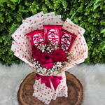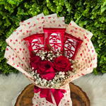 Encante e surpreenda com esse mimo apaixonante 💖 Nosso delicado buquê é composto por 3 rosas vermelhas, símbolo do amor e da paixão, acompanhadas por gypsophila (mosquitinho) que traz leveza e romantismo à composição. Para deixar o presente ainda mais especial, ele vem com 3 chocolates KitKat, tornando a experiência ainda mais doce e inesquecível. Embalado com papel decorado e finalizado com laço em cetim, é a escolha perfeita para presentear em aniversários, Dia dos Namorados, pedidos especiais ou simplesmente para dizer “eu te amo”. Um presente delicado, elegante e cheio de significado