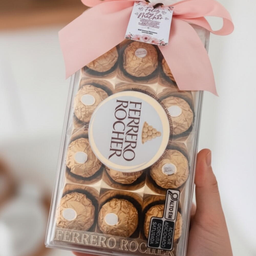Presenteie seus entes queridos com este maravilhoso kit de presentes com chocolate. Ele vem em uma sacola kraft de alta qualidade, acrescentando um toque sofisticado ao seu presente. O kit inclui um adorável cartão de mensagem, que você pode personalizar e enviar via chat, expressando seus sentimentos da maneira mais doce. Além disso, este conjunto contém uma caixa de deliciosos chocolates Ferrero Rocher em embalagem dourada luxuosa. As 12 unidades de trufas cobertas de avelãs, vão deixar quem você ama com água na boca. Este é o presente perfeito para tornar qualquer ocasião especial ainda mais memorável.