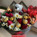 Este encantador buquê composto por 7 rosas vermelhas radiantes, representa o paroxismo do amor e da paixão. É acompanhado por um irresistível urso de pelúcia petite, simbolizando carinho, que se tornará o seu guardião. A adição de 7 deliciosos Ferrero Rocher permitirá que você adoçe este momento, enquanto um balão de coração metalizado agrega um toque alegre a este presente. Um presente verdadeiramente notável com uma mensagem forte de amor e admiração.