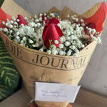 rosa - 6 un. embalagem - 1 un. folhagens - 1 un. laço - 1 un. caixa ferrero rocher - 1 un.