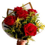 folhagem - 5 un. rosa vermelhas - 5 un. hastes de tango - 5 un.