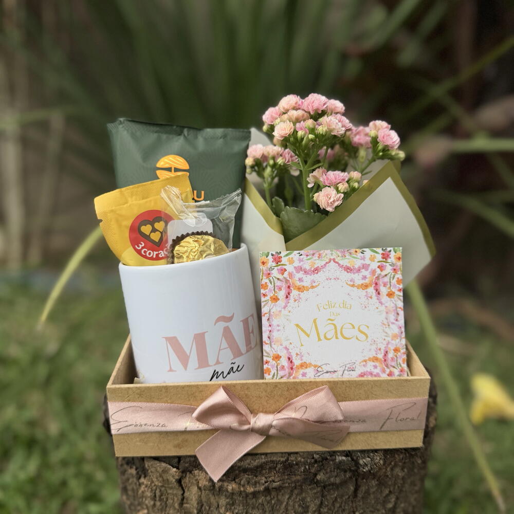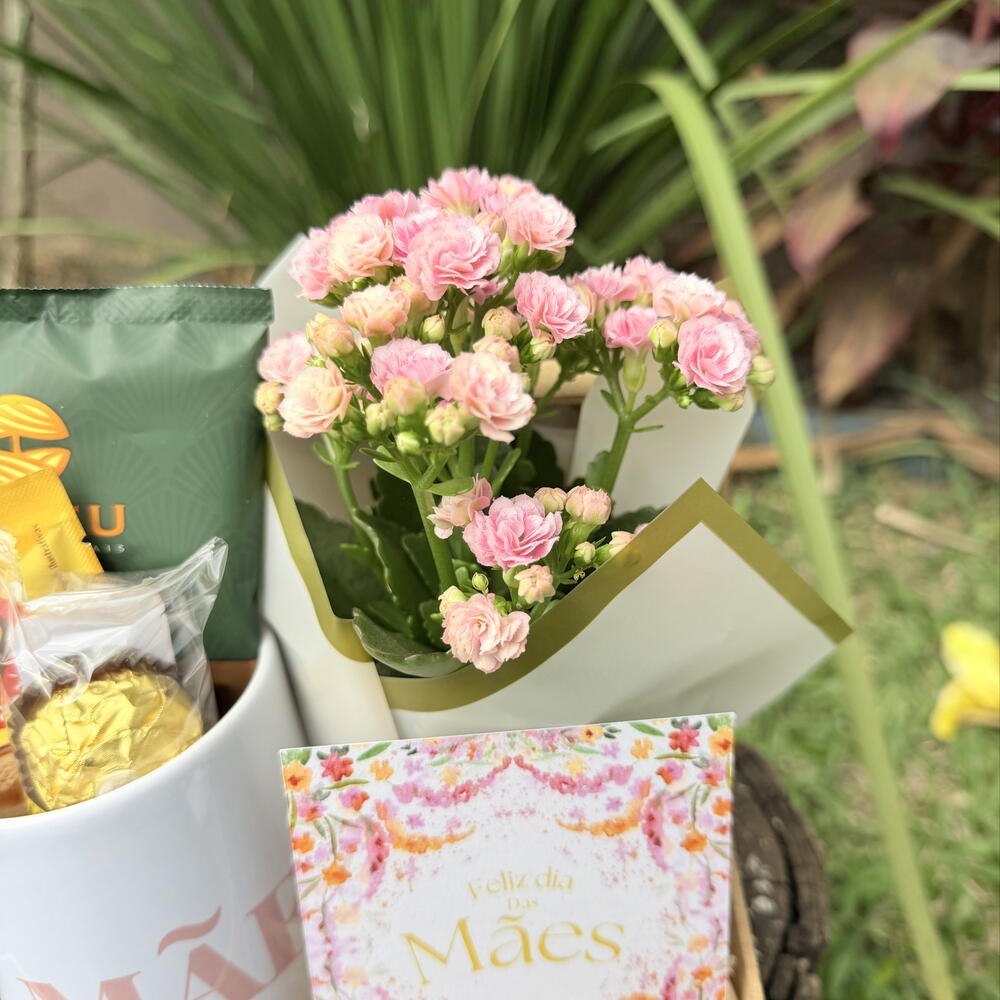 Uma homenagem delicada e cheia de significado para o Dia das Mães. A cesta Encanto Materno foi pensada para proporcionar um momento de carinho e aconchego, reunindo itens que encantam em cada detalhe. Com caneca temática, drip coffee Orfeu, cappuccino Três Corações e chocolates Ferrero Rocher, ela cria uma experiência saborosa e especial. Acompanha também uma charmosa caixa em MDF, uma calandiva em vaso que traz vida e beleza ao presente, além de cartão dedicado à data e laço personalizado que finaliza com elegância. Perfeita para demonstrar amor e gratidão de forma inesquecível.