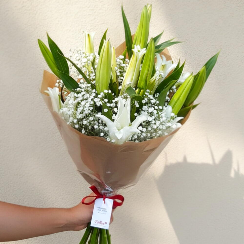 Deslumbre-se com a beleza desses 12 lírios brancos arranjados com classe. Majestosos e delicados, esses lírios são perfeitos para expressar puro amor, respeito e admiração. Cada flor deste buquê foi selecionada para seu encanto natural, formando um arranjo visualmente impressionante. Ideal para presentear em aniversários, casamentos ou simplesmente para mostrar a alguém o quanto você se importa.