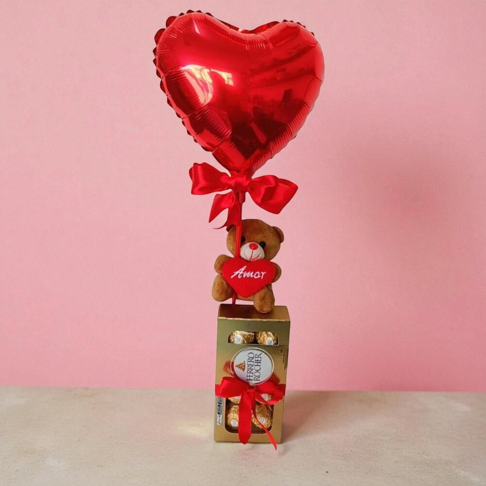 urso - 1 un. balão - 1 un. ferrero rocher cx - 1 un.