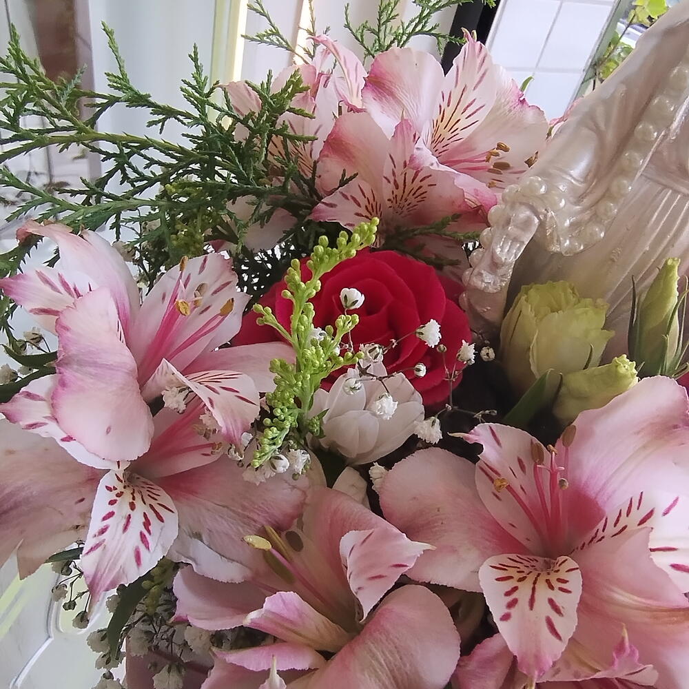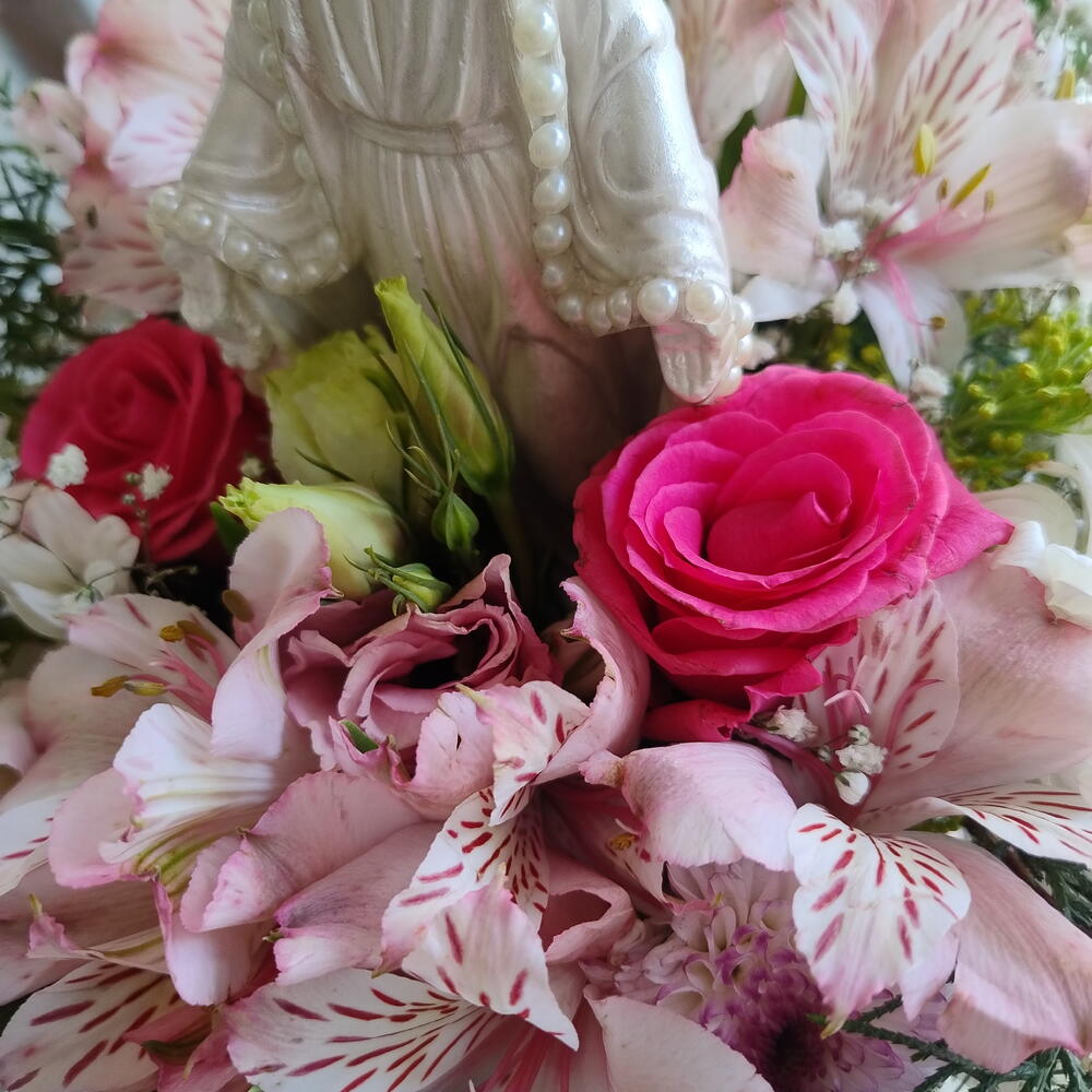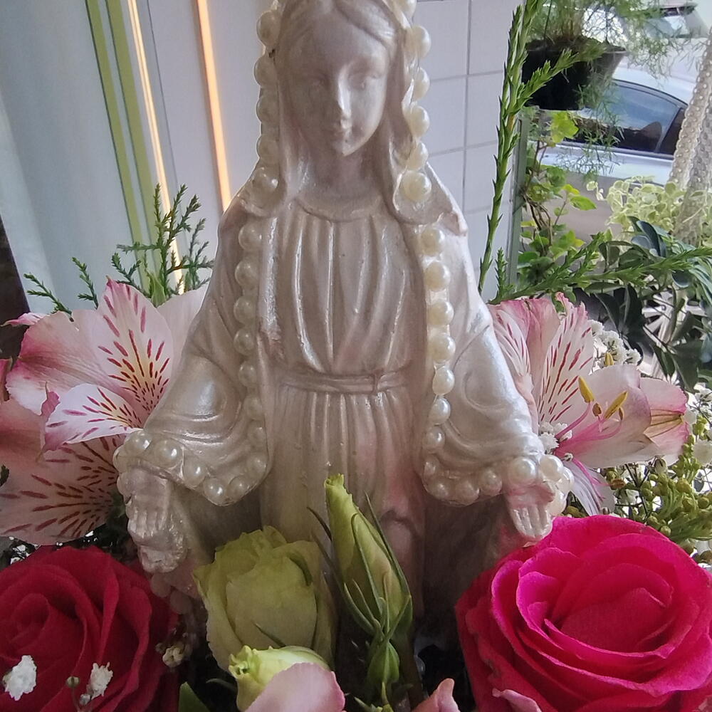 Descubra a magia e a beleza deste box excepcional Nossa Senhora de Fátima, cuidadosamente preparado com um mix diversificado de flores. Este produto é uma homenagem sublimada à devoção e religiosidade, encapsulando em seu design a graciosidade de flores frescas e o carisma divino. Uma peça de decoração verdadeiramente única e uma forma encantadora de expressar fé e amor. Ideal para presentear em ocasiões especiais ou decorar seu espaço sagrado pessoal.