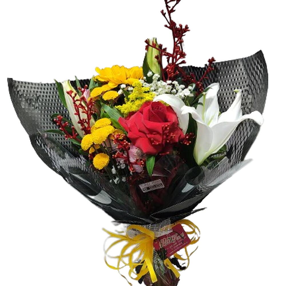 Composição: Um lindo buquê composto por Rosas importadas, Astromélias, um lírio, Tango, dedinho e sempre viva, perfeito para iluminar qualquer ambiente e alegrar o dia de quem você ama. As cores vibrantes e o aroma delicado das flores vão encantar e trazer um toque especial à sua celebração! Durabilidade: As flores têm uma durabilidade média de 5 a 7 dias, garantindo que a beleza do seu presente dure muito mais. Obs: A composição pode variar conforme a disponibilidade local, mas a qualidade sempre será mantida. Não perca a oportunidade de surpreender e mostrar seu carinho com este buquê maravilhoso!