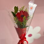 gerbera - 1 un. folhagens - 1 un. laço - 1 un. embalagem celofane - 1 un. embalagem vermelha - 1 un.