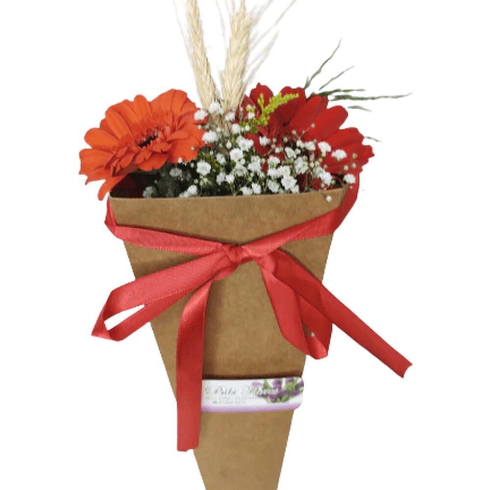Composição: Arranjo encantador com 2 gérberas vibrantes, acompanhadas de folhagens frescas, tudo isso em uma linda embalagem sacolhinha kraft. Disponível nas cores vermelha, kraft e preto, perfeito para surpreender alguém especial ou decorar seu cantinho. Durabilidade: As gérberas são flores de corte que duram em média de 5 a 7 dias, trazendo alegria e cor ao seu dia a dia. Obs: As cores e a disposição das flores podem variar conforme a disponibilidade, mas a qualidade e beleza estão sempre garantidas!