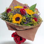 Este deslumbrante buquê, repleto de romance e alegria, é composto por 6 suaves rosas e 6 girassóis radiantes, complementados por 1 elegante folhagem. Cuidadosamente embalado em uma embalagem sofisticada e arrematado com um delicado laço, é a escolha perfeita para expressar seus sentimentos em qualquer ocasião.