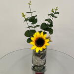 vaso de vidro - 1 un. girassol permanente - 1 un. arranjo com pedras - 1 un.