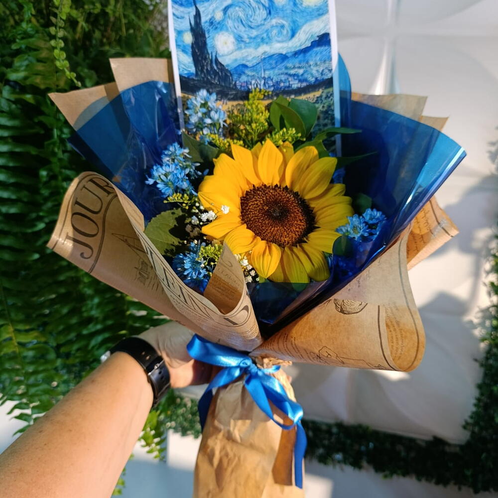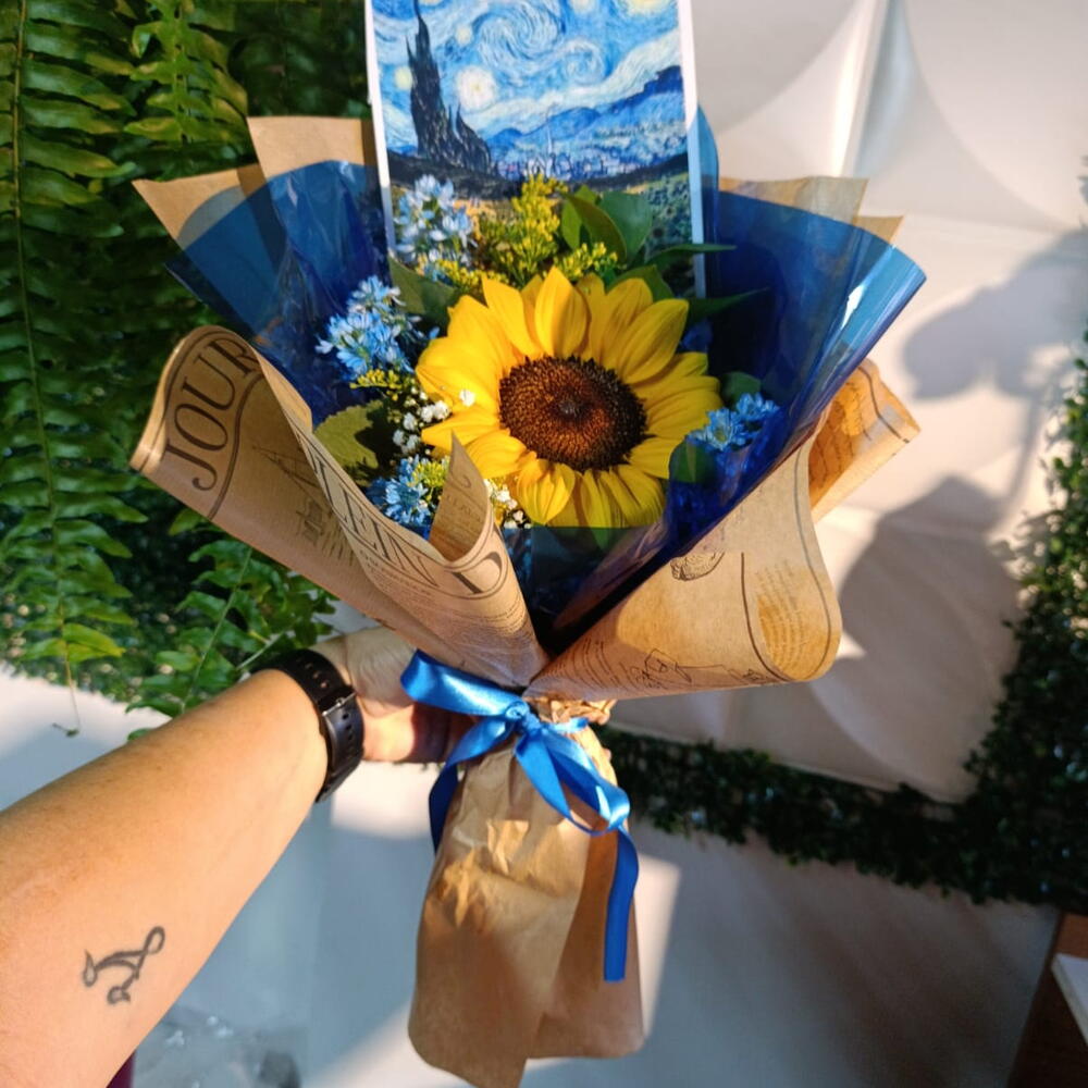 Descubra o esplendor natural com nosso arranjo de flores, composto por 5 Girassóis ornamentais, cuidadosamente decorados ao estilo Van Gogh. Vibrantes e cheias de vida, essas flores trarão um toque de encanto e elegância ao seu espaço. Ideal para decoração de casa, escritório ou para ocasiões especiais. Exponha sua apreciação pela arte e a beleza do natural com este arranjo especial.