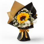 Girassol premium apresentado com papel coreano e finalizado com fita de cetim, ideal para presentear com elegância e charme.