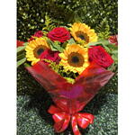 Este buquê é uma combinação perfeitos de 3 encantadores girassóis e 3 românticas rosas vermelhas, amplificadas por folhagens e complementos adicionais. Para conseguir o toque final perfeito, ele vem magnificamente embalado com um laço incluído. Este arranjo floral emana alegria, amor e natureza, tornando-o ideal para todas as ocasiões.