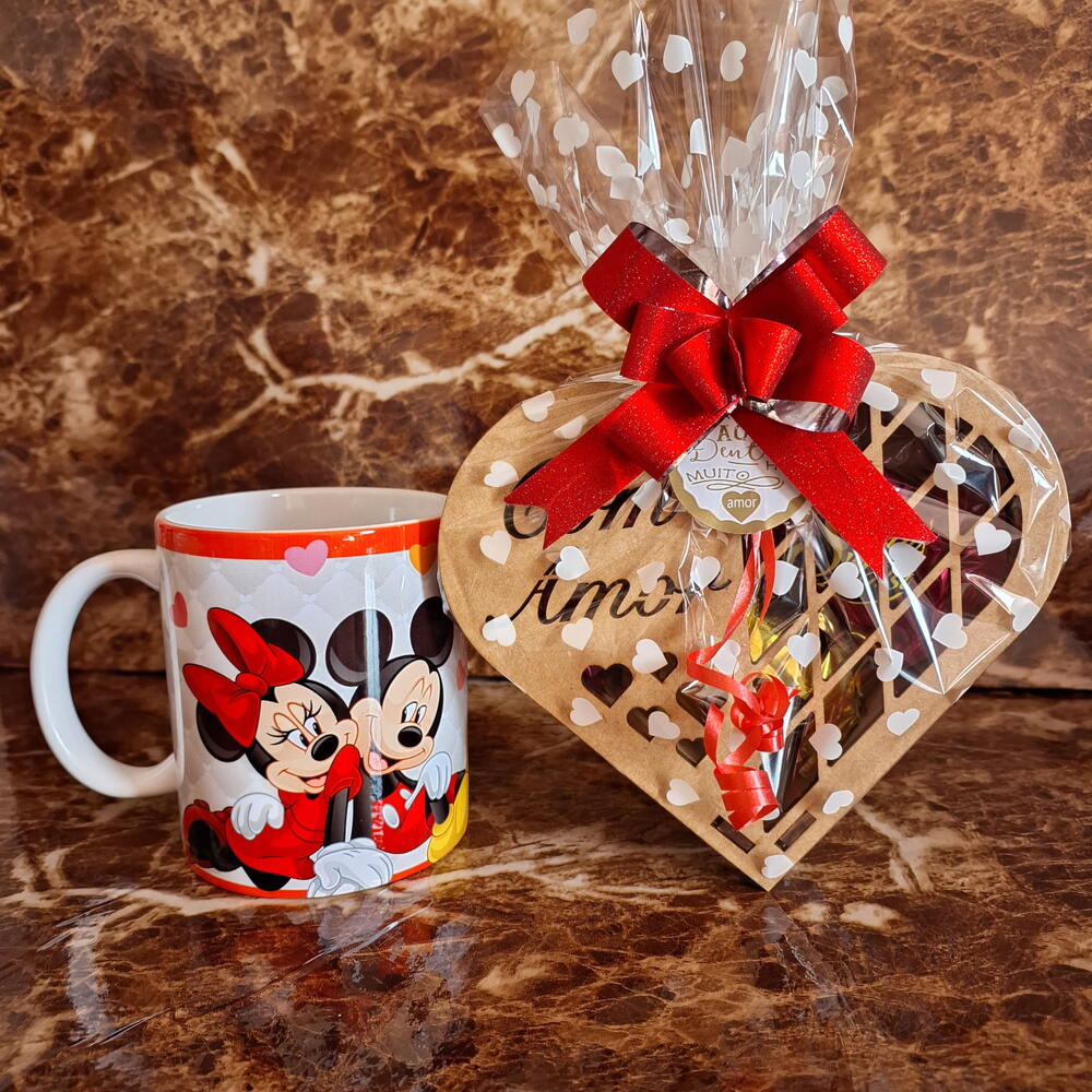 caneca mickey e minnie - eu e você - 1 un. coraçãocom amor com 2 bombom sonho de valsa e 1 bombom ouro branco - 1 un.