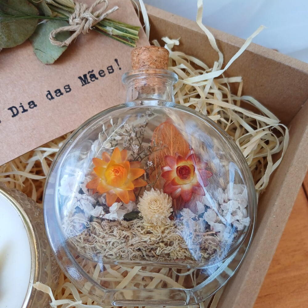 Este pacote encantador de Flores secas é composto por um Jardim no Vidro Mini Jasmim, uma Vela Aromática Artesanal de Limão Siciliano e um Cartão Floral Buquê Personalizado para acrescentar uma mensagem especial. Tudo isso é cuidadosamente embalado em uma Caixa MDF de 20x20 cm, tornando-o o presente perfeito para expressar o quanto você se importa. Aprecie o delicado aroma das flores secas e a vela de limão siciliano, enquanto compartilha suas emoções através do cartão floral personalizado.