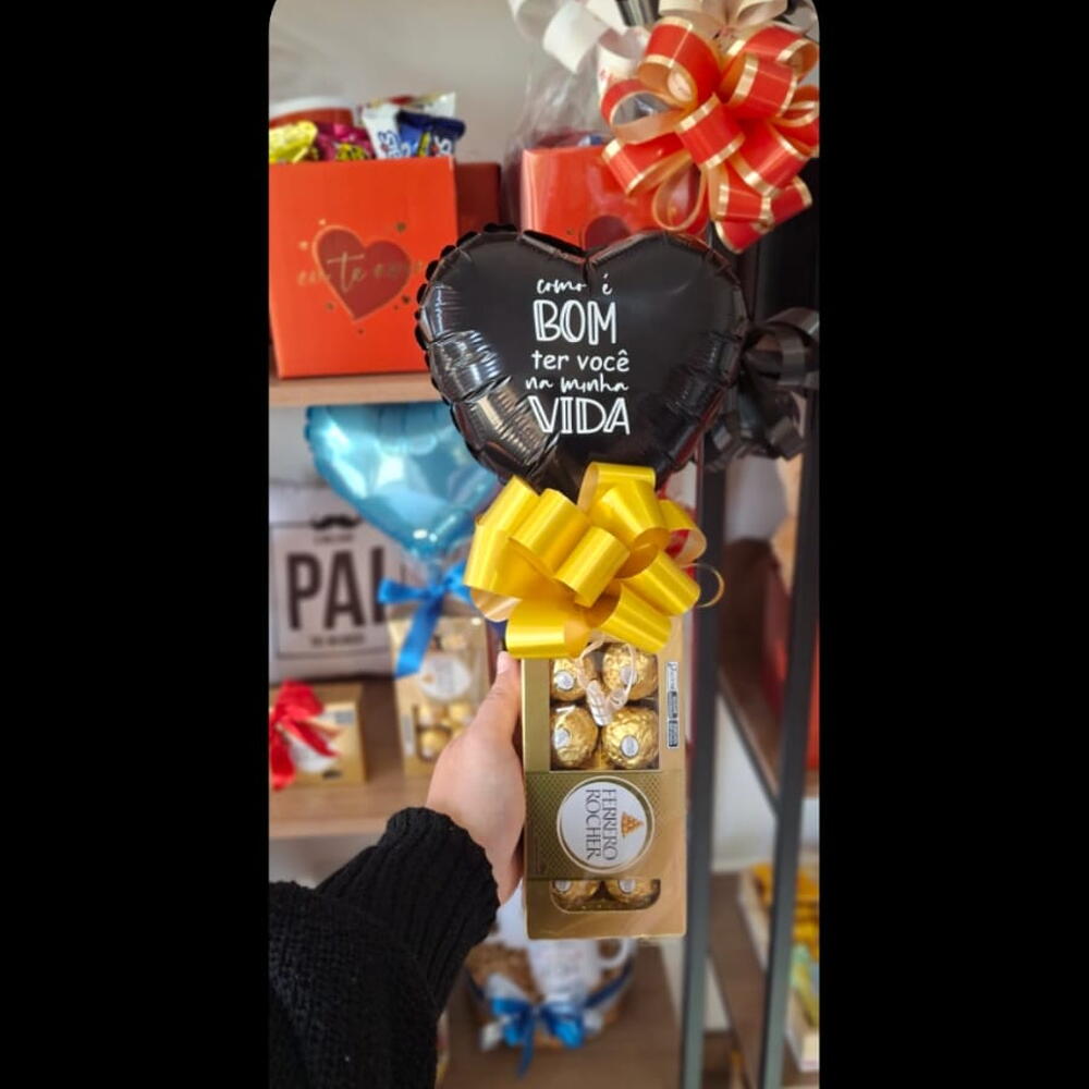 embalagem - 1 un. bombons ferrero rocher - 1 un. laço - 1 un. balão metalizado - 1 un.
