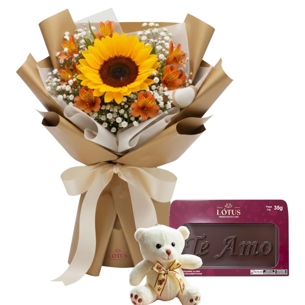 Kit: Girassol Unique + Chocolate Te Amo + Pitico