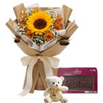 CONHEÇA O PRESENTE QUE VAI DEIXAR O DIA DA SUA MÃE MAIS FELIZ Você pode até tentar falar “eu te amo” com palavras… Mas nada vai ser tão direto, doce e fofo quanto esse combo aqui! Um buquê com girassol para lembrar que ela é luz, um ursinho para lembrar como ela é fofa e (do jeitinho que ela adora abraços) e uma barra de chocolate que deixa tudo mais doce. É carinho em forma de flor, mimo em forma de pelúcia e amor em forma de chocolate. Ou seja: tudo que sua mãe merece, sem nem precisar de legenda. ITENS QUE COMPÕEM O SEU PRESENTE Buquê com: 1 Girassol Unique Astromélias laranjas 1 Ursinho chaveirinho 1 Chocolate te amo Seu presente chega finalizado com papel celofane e um delicado laço de cetim. Porque cada detalhe merece estar à altura da sua mãe - Peça já o seu! DEIXE SUA SURPRESA AINDA MAIS ESPECIAL: Inclua uma mensagem cheia de carinho, balão, chocolate ou até polaroides para eternizar o momento. Cada detalhe conta! IMPORTANTE: Trabalhamos com flores importadas e selecionadas com todo o cuidado, garantindo qualidade e beleza. Por se tratarem de itens naturais, variações de cor, tamanho ou forma podem ocorrer e isso só torna cada presente ainda mais único As imagens são ilustrativas.