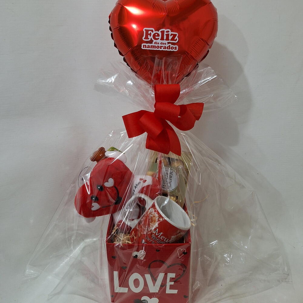 caneca - 1 un. balão dia dos namorados - 1 un. chocolate ferro rocher com 08 - 1 un. almofadaurso - 1 un.