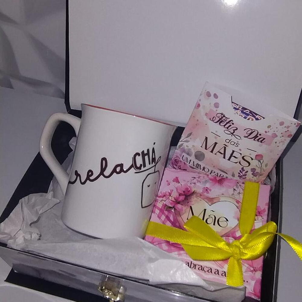 embalagem - 1 un. caneca - 1 un. caixa cartonada - 1 un. laço em cetim - 1 un. mimos - 2 un.