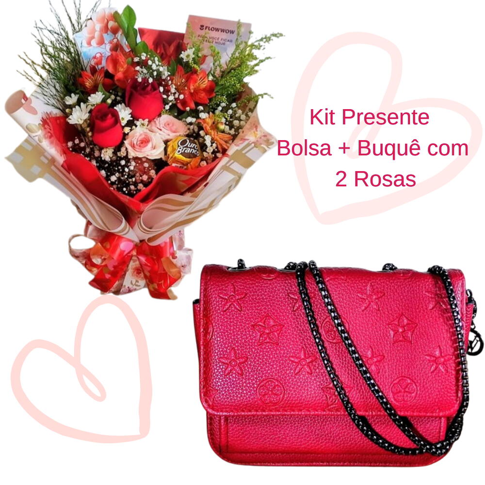 Kit Presente: Bolsa + Buquê 2 Rosas