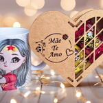 Kit presente Mãe - Com Caneca e Coração Mdf " Mãe Te Amo "